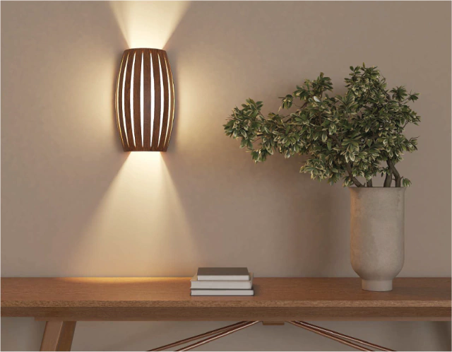 Mais do que iluminar, a arandela transforma a parede em uma verdadeira obra de arte natural.