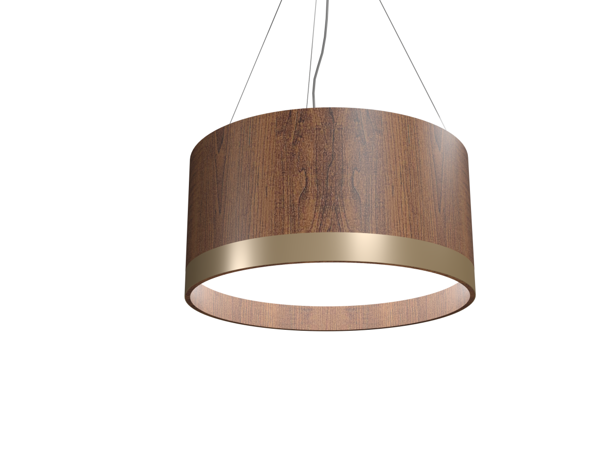 Pendente Cilíndrico Latão Accord - Design Exclusivo em Lâmina de Madeira Natural