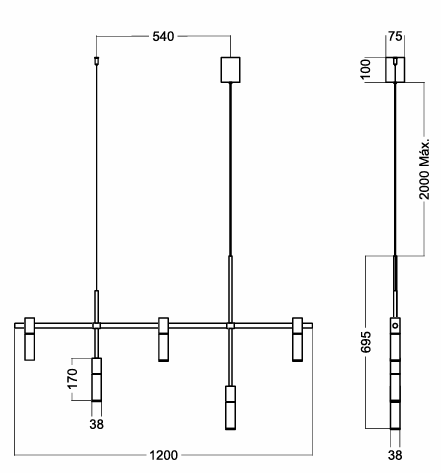 | Luminária | 120 x 3,8 x 70cm |