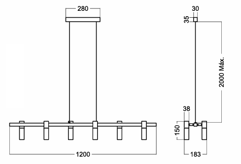 | Luminária | 120 x 18,3 x 15cm |