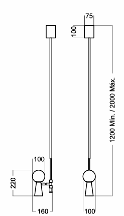 | Luminária com 2 porta lâmpadas | 1 x G9 Halopin + GU10 MR16 |