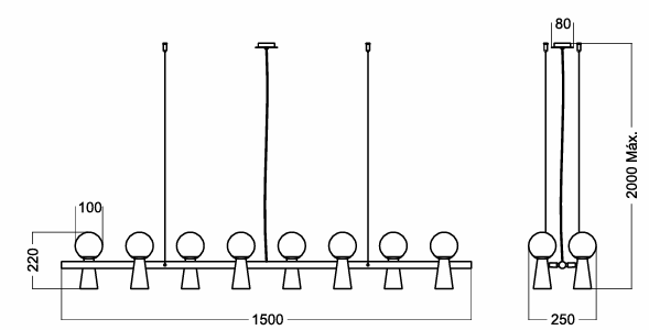 | Luminária com 2 porta lâmpadas | 8 x G9 Halopin + GU10 MR16 |