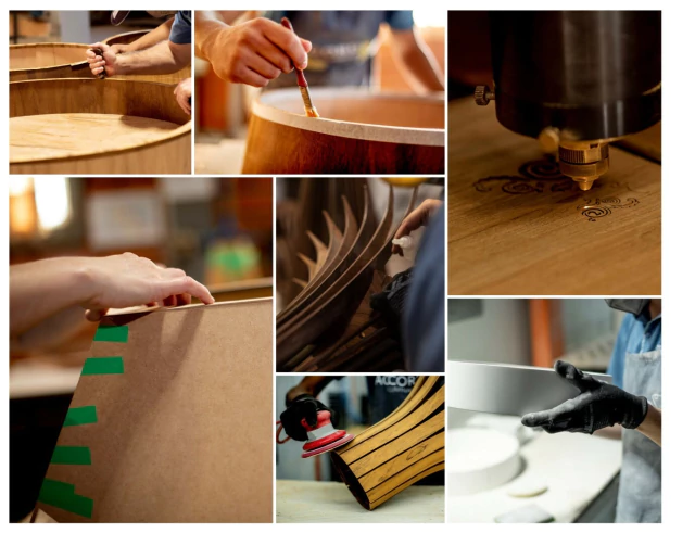 Material: Fabricado com lâmina natural de madeira e acrílico. Os acabamentos em madeira preservam a textura natural da lâmina, enquanto os tingidos são aplicados com precisão em cabines especializadas.