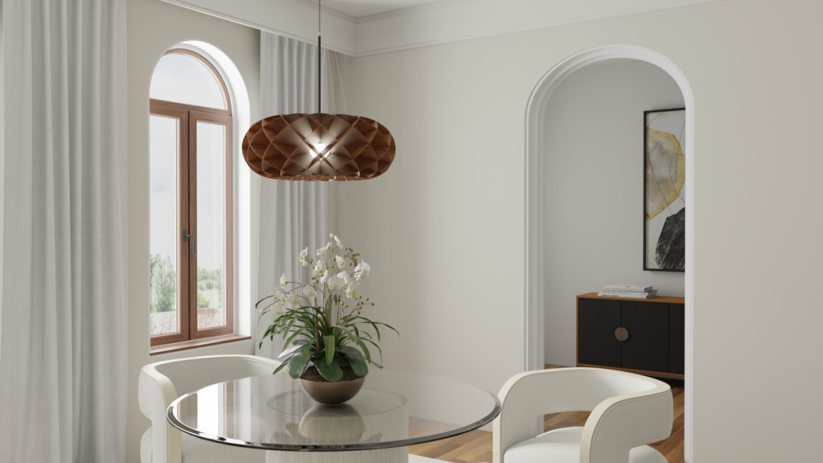 O Pendente Trama Accord desenvolvida a partir de cortes orgânicos e fluidos que proporcionam uma distribuição de luz suave e envolvente. Sua forma foi projetada para criar volumetrias leves, evocando movimento e equilíbrio visual.