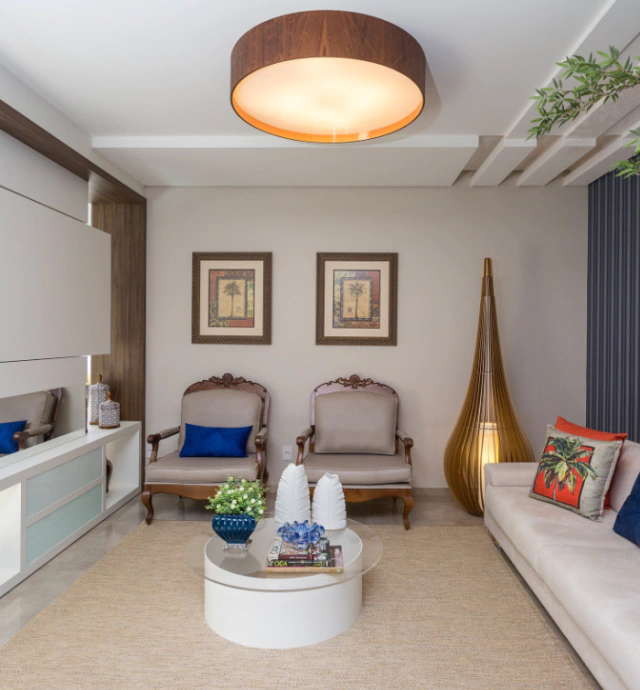 Mais do que iluminar, o plafon transforma o teto em protagonista, elevando o nível estético do espaço com naturalidade e bom gosto.